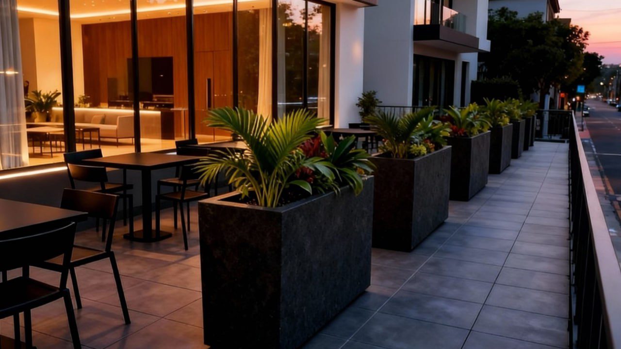 ❄️ Protecție termică pentru rădăcini: Corpul este un „sandwich” din polistiren extrudat și beton armat. Vazoanele nu sunt doar durabile, ci și protejează rădăcinile plantelor de îngheț iarna și de supraîncălzire vara.